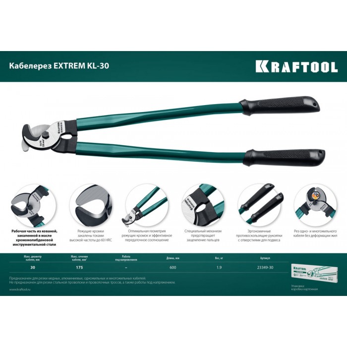 Профессиональный электромонтажный инструмент KRAFTOOL изготовлен из высококачественной стали и предназначен для перекусывания гибких проводников, изготовленных только из цветных металлов.