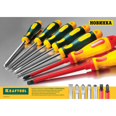 Профессиональные отвертки KRAFTOOL X-Drive изготовлены из высокопрочной Cr-Mo стали. Специальная закалка стержня и система насечек NSS обеспечивают удобство работы и длительный срок службы