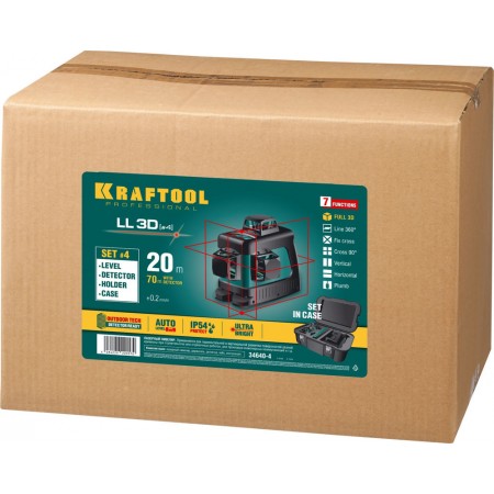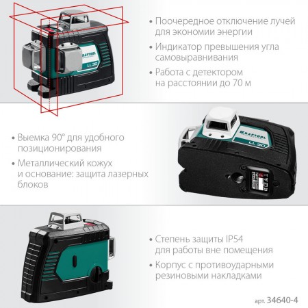 - 3 режима проецирования линий: горизонтальная и две вертикальные линии с развёрткой 360°, благодаря чему луч будет виден в любой точке.