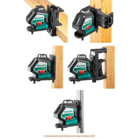 - 3 режима проецирования линий: горизонтальная линия с развёрткой 360°. вертикальный луч, отвес.