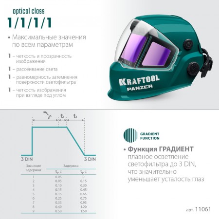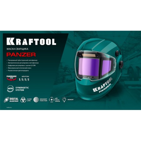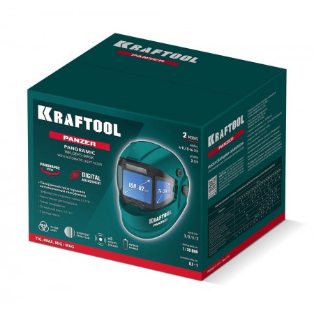 Профессиональная маска сварщика KRAFTOOL для защиты глаз и лица сварщика от прямых излучений сварочной дуги, искр и брызг расплавленного металла, от механических воздействий при выполнении сварочных работ, резки и пайки металла.