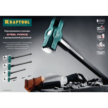 Кувалда 5 кг со стальной удлинённой обрезиненной рукояткой Steel FORCE KRAFTOOL 2009-5