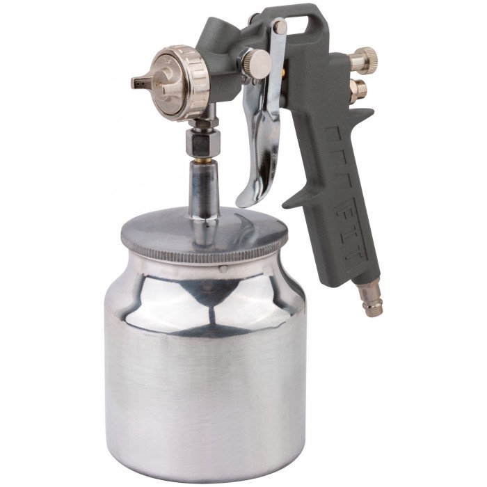 Для пневмокомпрессора. Соединение быстросъемное. С алюминиевым нижним бачком. Возможность регулировки: факела, расхода краски.Используется с: водоэмульсионными красками, синтетическими эмалями, полиуретановыми эмалями, эпоксидными эмалями, нитроэмалями, лаками.