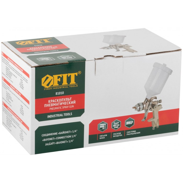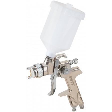 рабочее давление 2,0 - 3,5 бар, ширина факела 160-240 мм. Материал: алюминий. Для пневмокомпрессора. Cоединение байонет. С пластиковым верхним бачком. Возможность регулировки: факела, расхода краски, потока