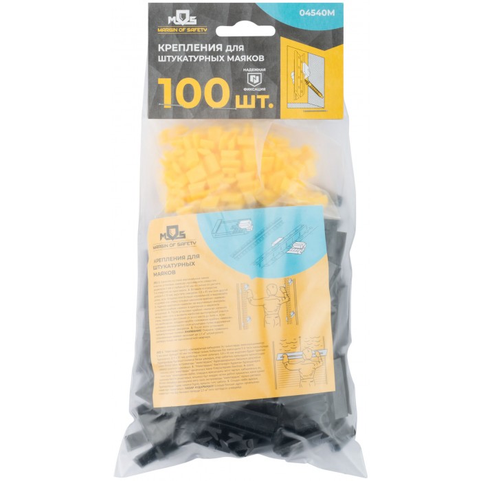 Набор: крепежная планка 100 шт. + фиксатор 100 шт. Упрощает процесс фиксации штукатурных маяков к основанию. Материал: пластик. Упаковка: