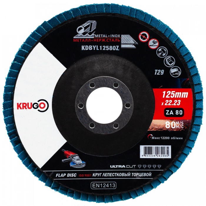 Круг лепестковый торцевой 125 х 22.23mm P80 KRUGO Циркониевый Тип 2 (KDBYL12580Z)