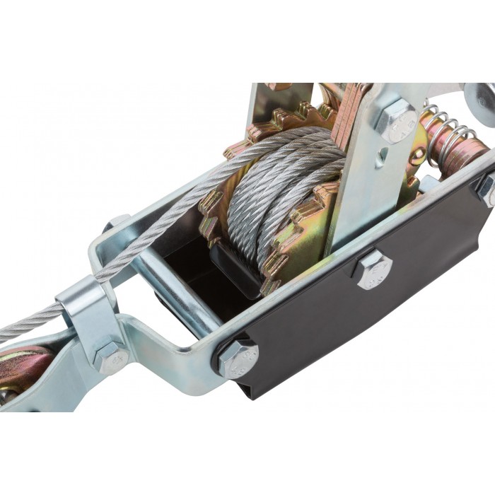 Для перемещения грузов по горизонтальной и наклонной плоскости. Механизм усилен двойной шестеренкой для троса. Симметричные шестеренки, не дают тросу застревать и съезжать в сторону. Стопор лебедки вынесен ближе к рычагу и находится дальше от шестеренки, что более удобно и безопасно. Переключатель реверса, позволяет ослаблять натяг постепенно. Упаковка: картонная коробка.