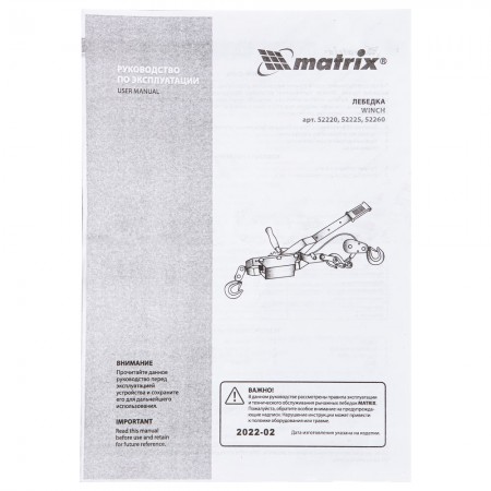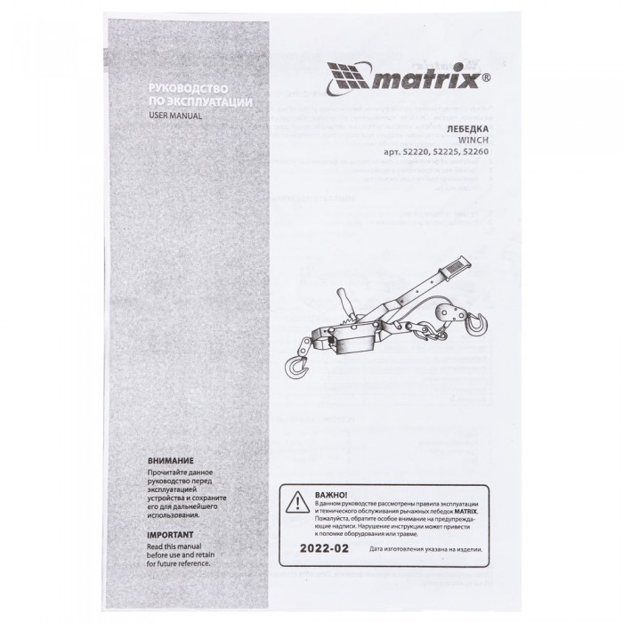 Лебедка рычажная, тяга 2 т, подъем 0.8 т, одинарное храповое колесо Matrix (52220)