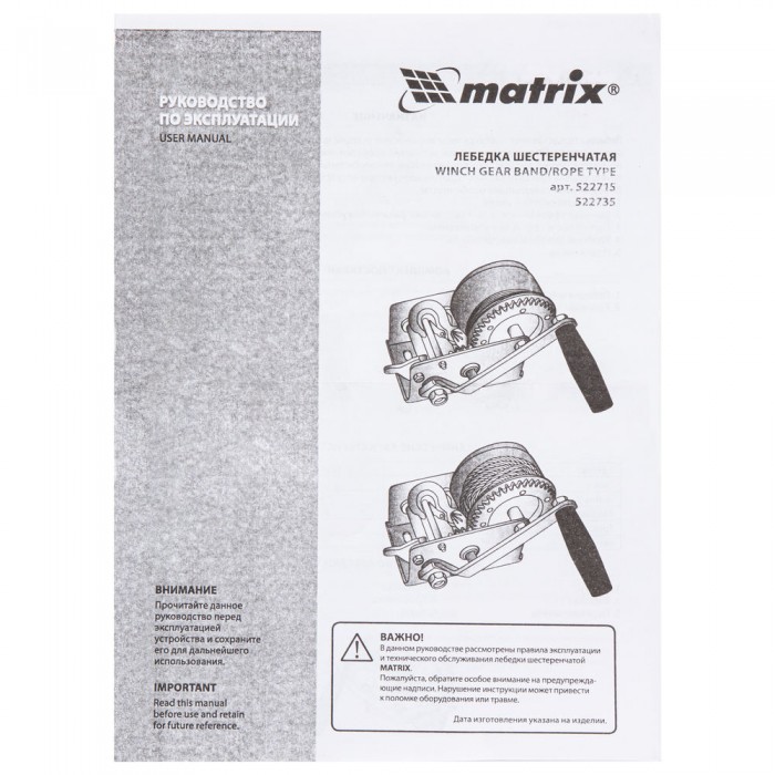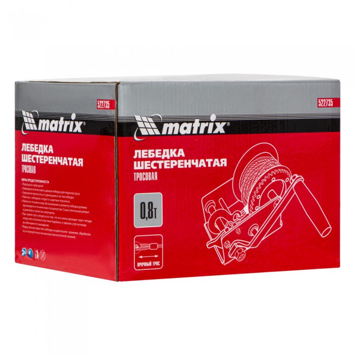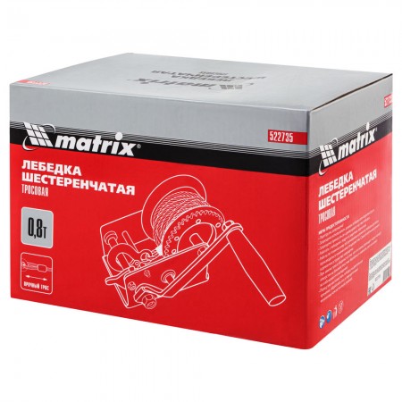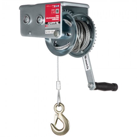 Лебедка шестеренчатая, тяга 0.8 т, тросовая Matrix (522735)