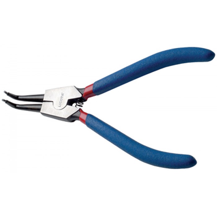 Съемник внешних стопорных колец, загнутый Licota APT-38004A из хром-ванадиевой стали и ручками из эргономичного нескользящего полимера. Съемник работает на разжатие. Длина инструмента - 140 мм.