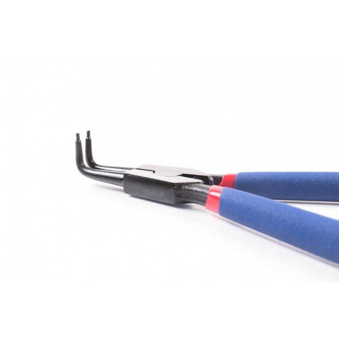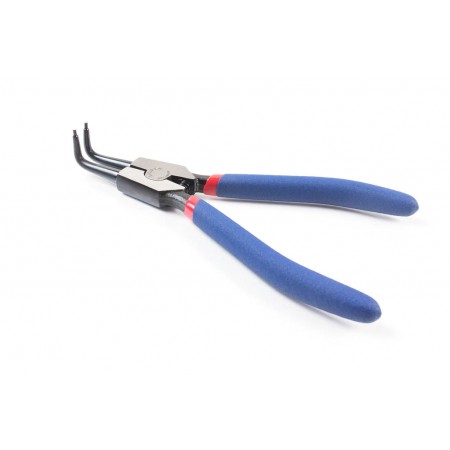 Съемник внешних стопорных колец, загнутый Licota APT-38004C из хром-ванадиевой стали и ручками из эргономичного нескользящего полимера. Наконечники - высокопрочная подшипниковая сталь. Длина инструмента - 240 мм.