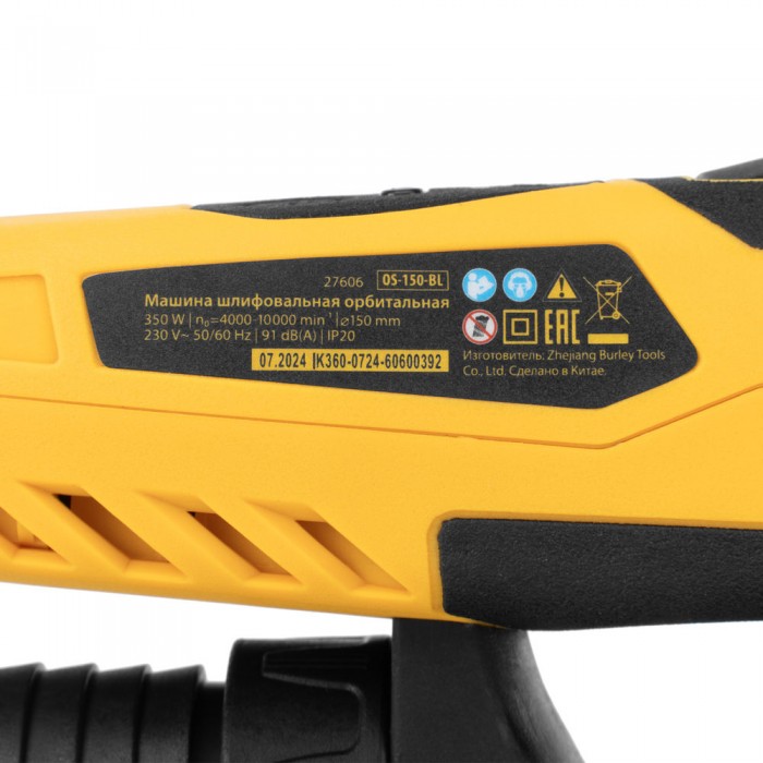 Машина шлифовальная орбитальная бесщет OS-150-BL, 350 Вт, 4000-10000 об/мин Denzel (27606)