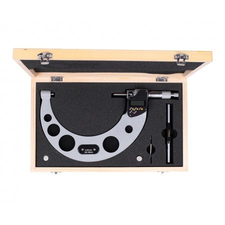 Цифровой гладкий микрометр позволяет быстрее и легче считывать показания, а также устанавливать прибор на «нуль», менять систему вычислений с метрической на дюймовую, устанавливать пределы допуска и др. функции.