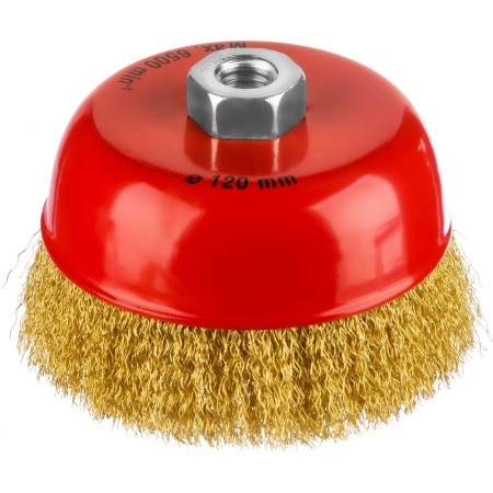 Чашечная щетка-крацовка для УШМ 125 мм, витая стальная латунированная проволока 0.3 мм MIRAX 35142-125