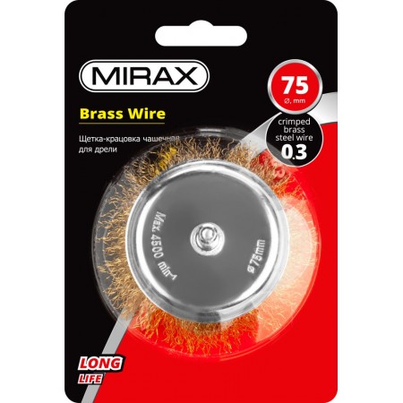 Щетка чашечная для дрели 75 мм, витая стальная латунированная проволока 0.3 мм MIRAX 35147-075