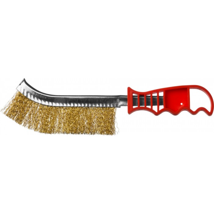 Щетка ручная однорядная с пластмассовой рукояткой, витая стальная латунированная проволока 0.3 мм MIRAX 35112-1