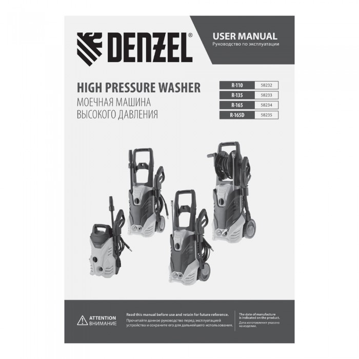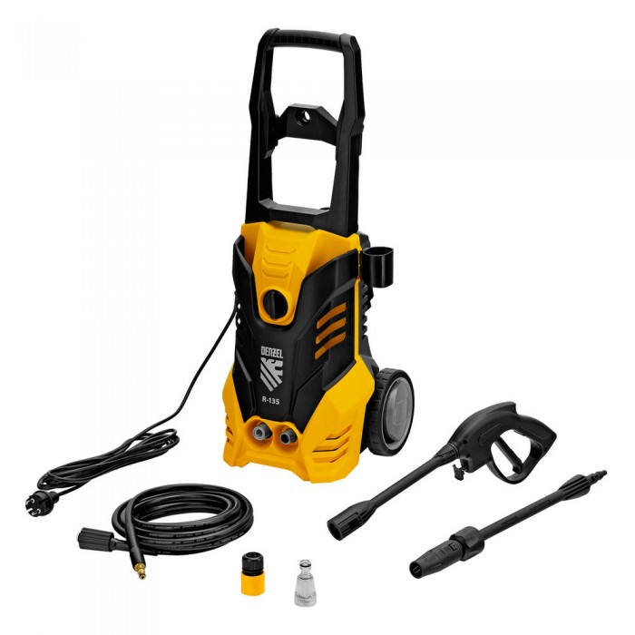 Моечная машина высокого давления R-135, 1800 Вт, 135 бар, 6 л/мин, колесная Denzel (58233)