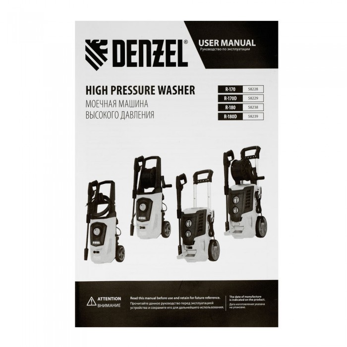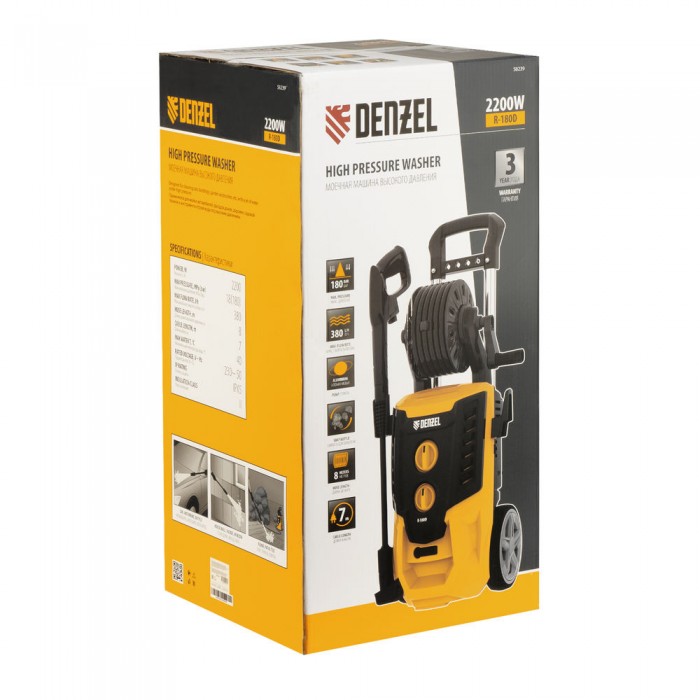 Моечная машина высокого давления R-180D, 2200 Вт, 180 бар, 380 л/ч, с барабаном Denzel (58239)