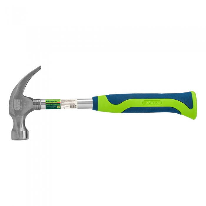 Молоток-гвоздодер, металлическая трубчатая обрезиненная рукоятка, вес 450 г, боек 27 мм Сибртех