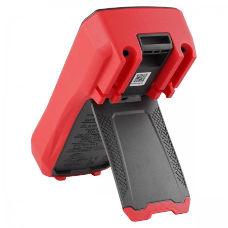 На задней поверхности устройства расположены петля для подвешивания и откидная подставка, которые позволяют установить измеритель так, чтобы специалисту было максимально удобно считывать показания, а руки были свободны для работы с щупами.