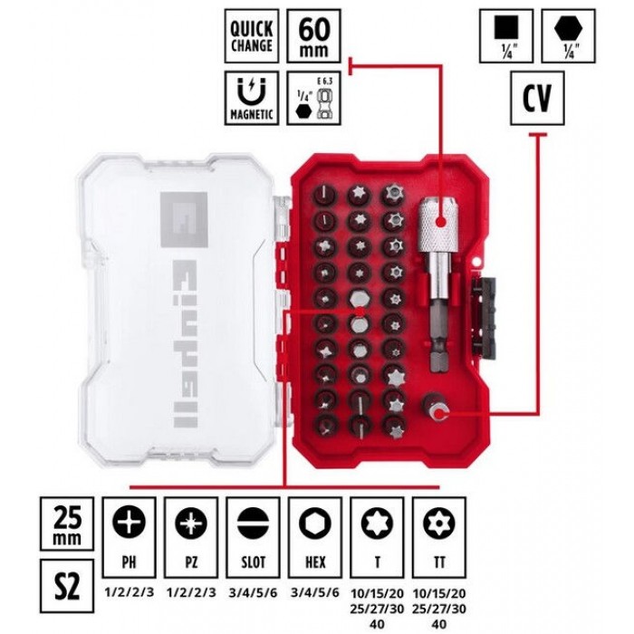 Набор бит Einhell 32 предмета,битодержатель,XS-Case (118693)