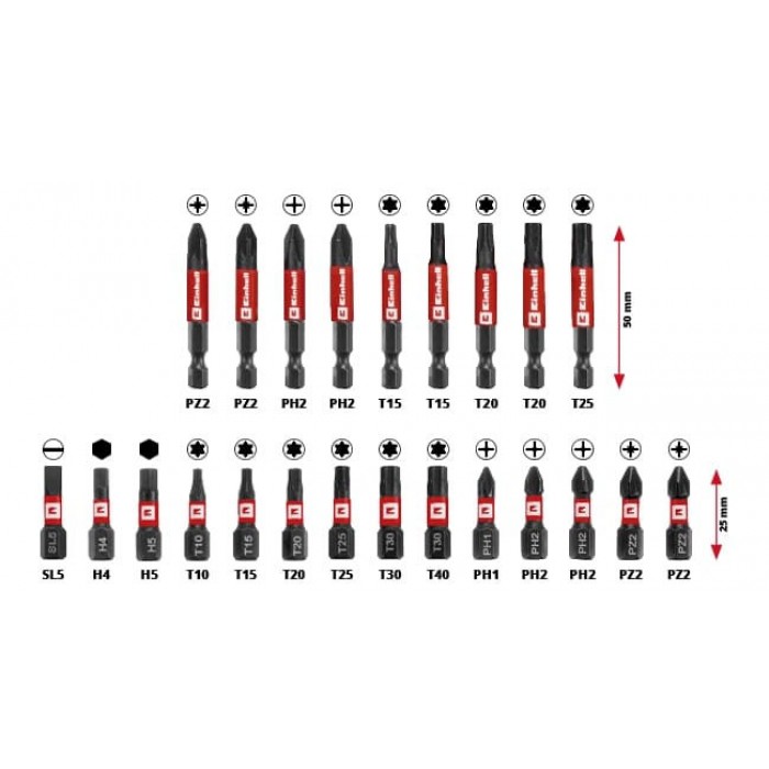 Набор бит и головок Einhell 28 предметов,ударопрочные,битодержатель,S-case (108703)
