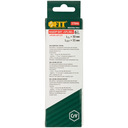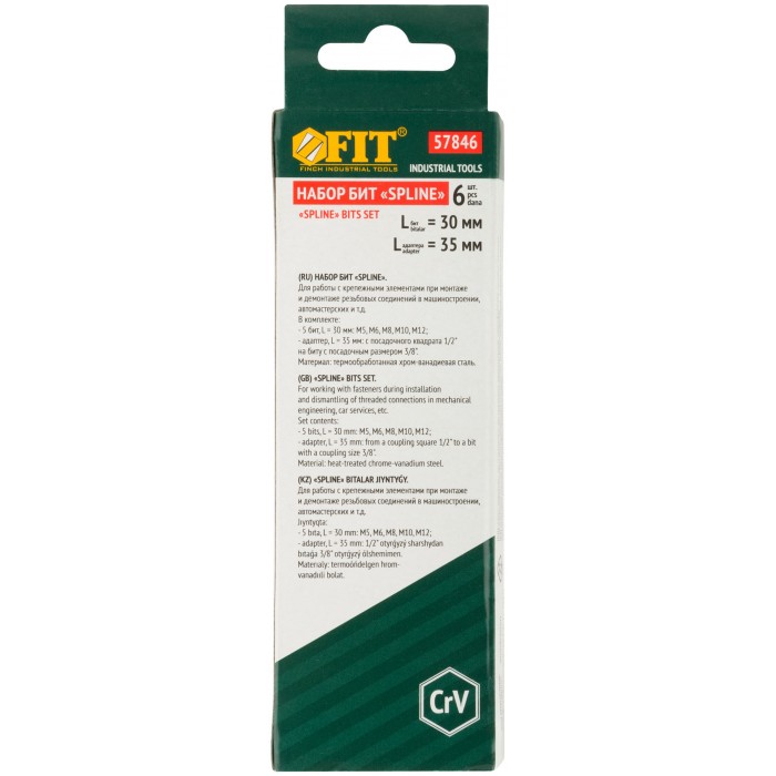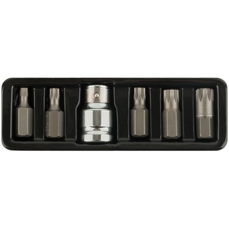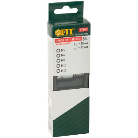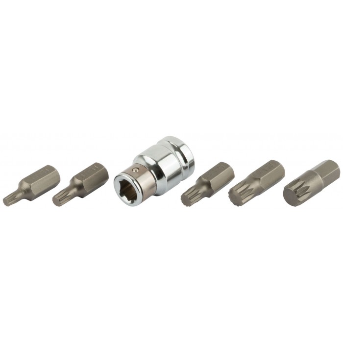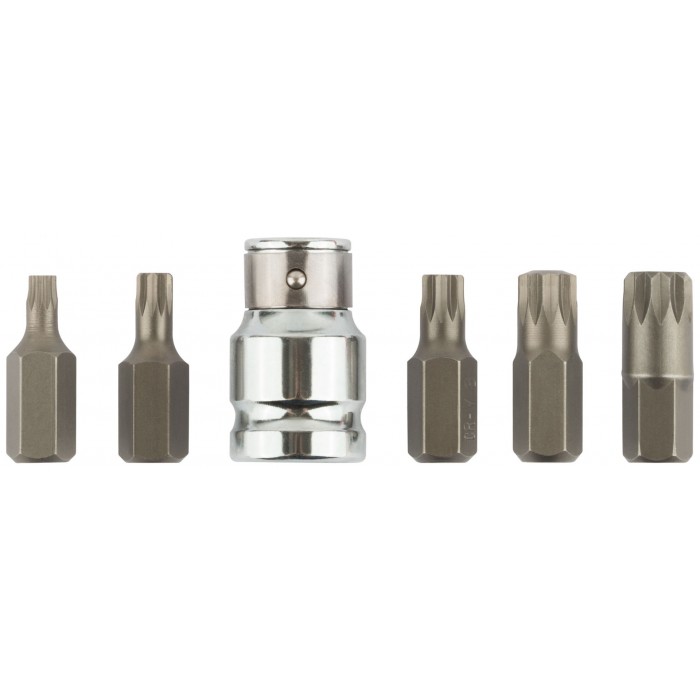 В наборе: 5 бит (длина 30 мм) из хром-ванадиевой стали (М5; М6; М8; М10; М12) + адаптер с воротка на биту с посадочным диаметром 10 мм.