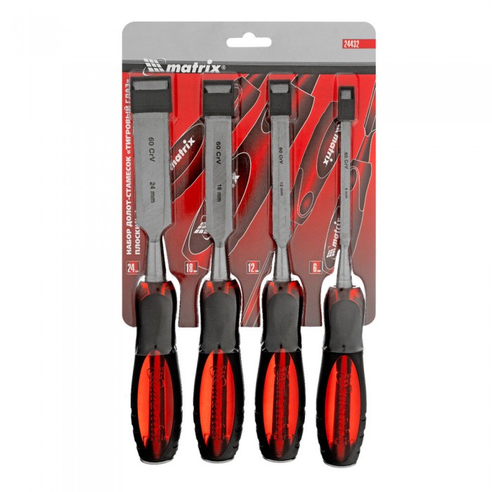 Набор долот-стамесок плоских "Тигровый глаз", 4 шт, 6-12-18-24 мм Matrix