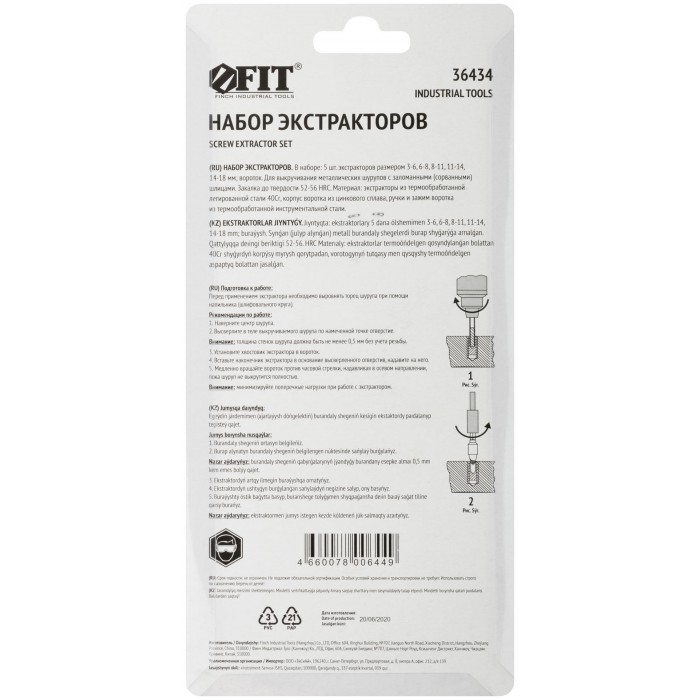 Для выкручивания шурупов и болтов с поврежденным шлицем. Материал: экстракторы из легированной инструментальной стали 40 Cr, корпус воротка из цинкового сплава, ручки и зажим воротка из инструментальной стали. Упаковка: блистер.