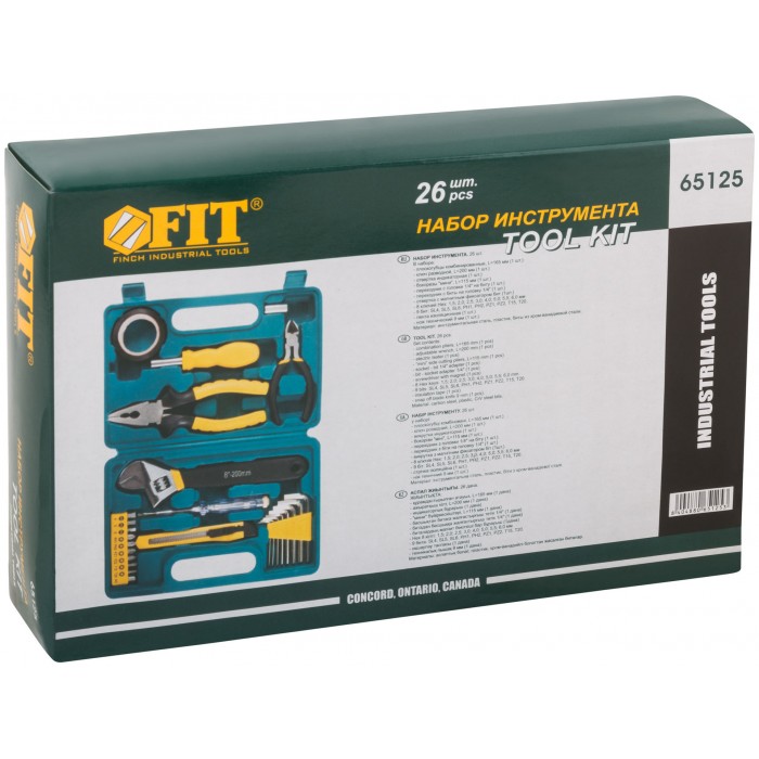 В наборе: пассатижи (165 мм); ключ разводной (200 мм); отвертка индикаторная; бокорезы ''мини'' (115 мм); переходник с воротка 1/4'' на биту; переходник с биты на головку 1/4''; отвертка с магнитным фиксатором бит; 8 ключей HEX (1.5, 2.0, 2.5, 3.0, 4.0, 5.0, 5.5, 6.0 мм); 9 бит - 25 мм (SL4, SL5, SL6, PH1, PH2, PZ1, PZ2, T15, T20); лента изоляционная, нож технический (9 мм). Материал: инструментальная сталь, пластик, биты из хром-ванадиевой стали. Упаковка: пластиковый чемодан.