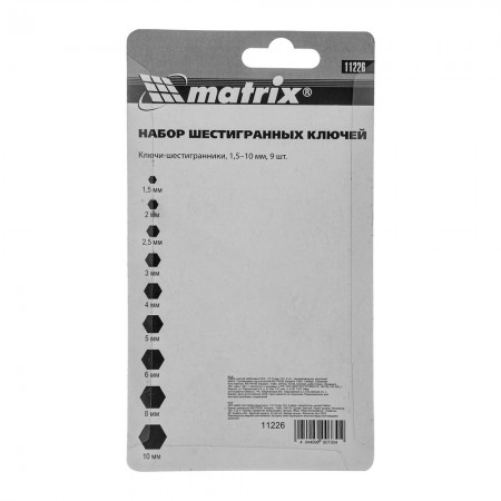 Набор ключей имбусовых HEX, 1.5-10 мм, CrV, 9 шт Matrix