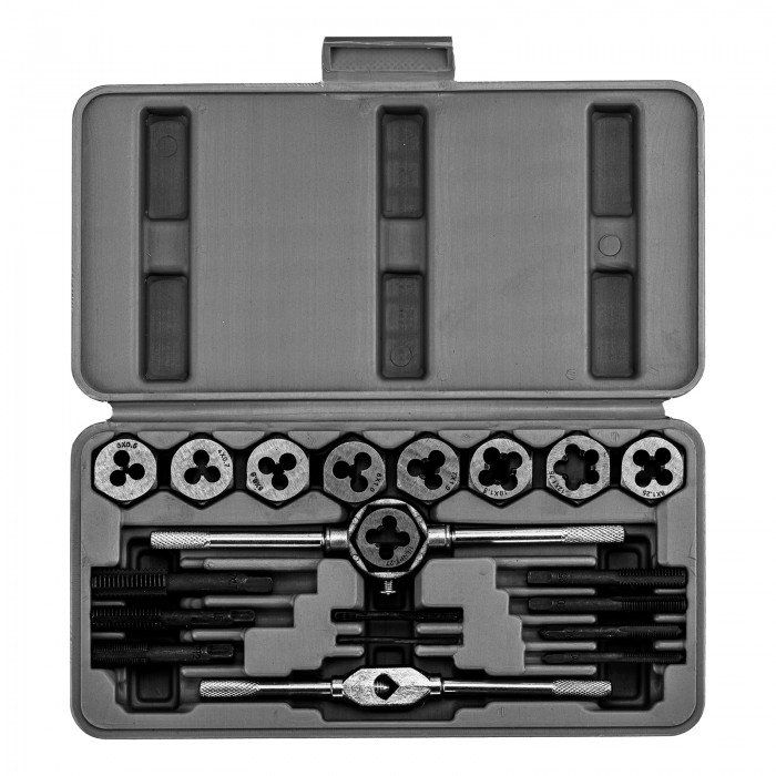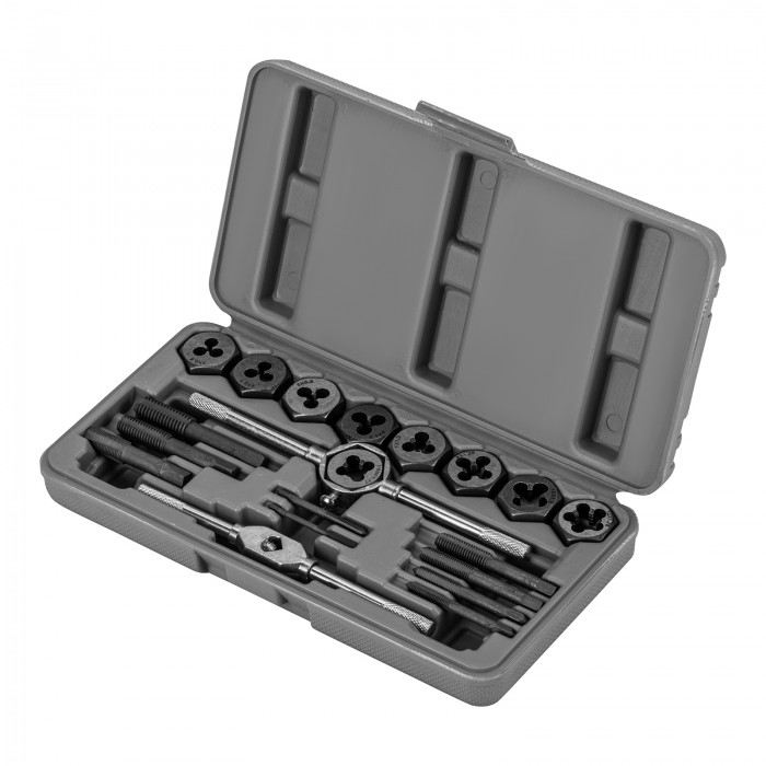 Набор метчиков и плашек М3-М12, плашко-метчикодержатель, 20 предметов, пластиковый бокс Sparta