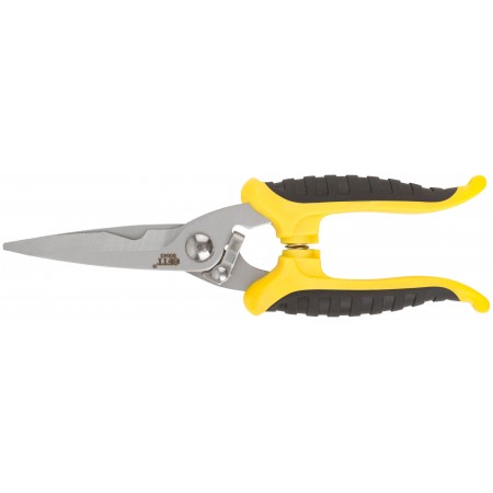 Профи. Для резки кабеля, сеток из проволоки, алюминиевой проволоки и кожи. Специальные зубцы, предотвращающие скольжение при резке. Острое лезвие. Двухцветные мягкие ручки с пружиной. Материал: 65 Mn сталь. Упаковка: блистер.