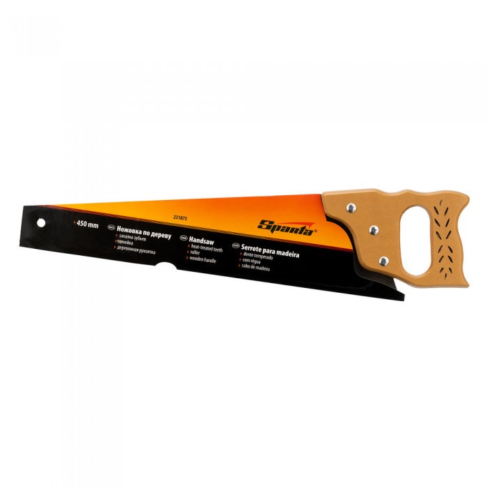 Ножовка по дереву, 450 мм, 7-8 TPI, каленый зуб, линейка, деревянная рукоятка Sparta