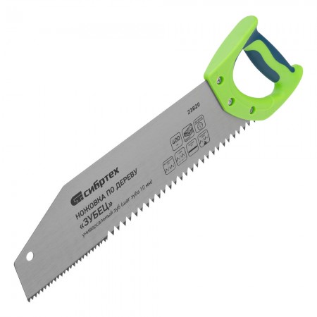 Ножовка по дереву "Зубец", 400 мм, шаг зуба 10 мм, каленый зуб 2D, двухкомпонентная рукоятка Сибртех