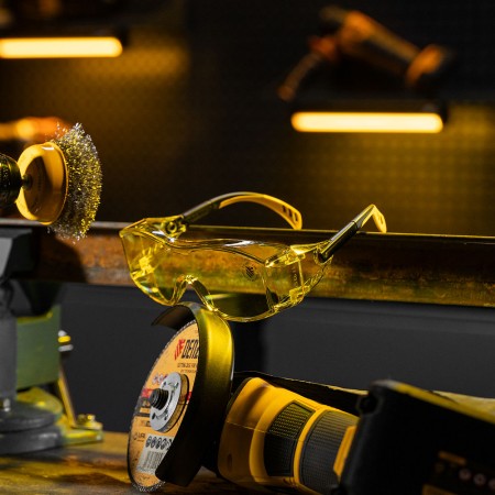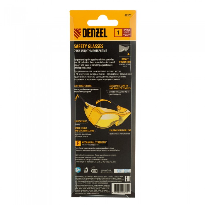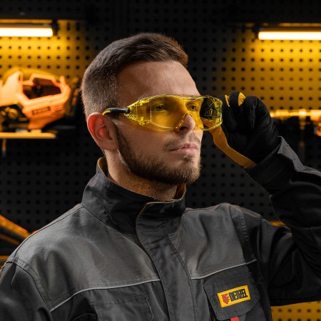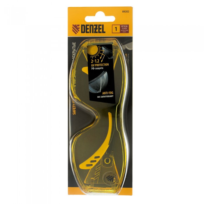 Очки защитные открытые, поликарбонатные, увеличенная желтая линза, регулируемые дужки Denzel (89202)
