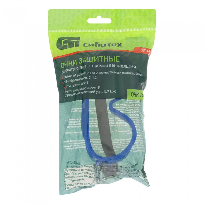 Очки защитные закрытого типа с прямой вентиляцией, поликарбонат Сибртех (89161)