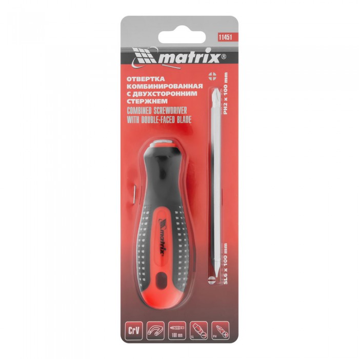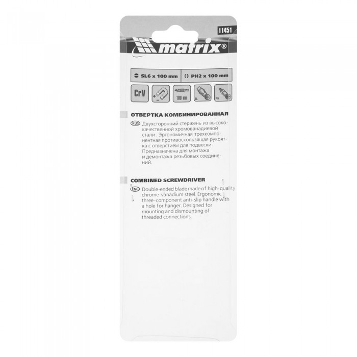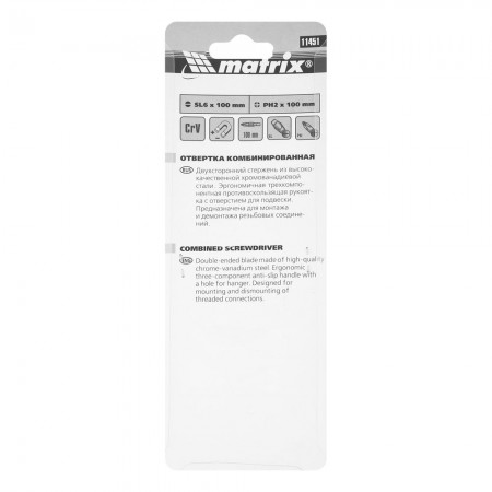 Отвертка комбинированная Fusion SL6/PH2 мм, CrV, трехкомпонентная рукоятка "Anti slip" Matrix