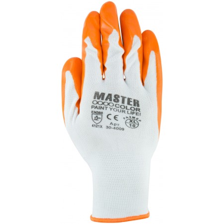 Перчатки белые, полиэстер, с обливкой и нитрила. Для работы с красками, лаками и другими жидкими материалпми, в т.ч агрессивными. Кислотно-щелочностойкие. Надежный захват на скользких поверхностях. Комфорт при длительном использовании. Плотное прилегание, не оставляют ворса. Водоотталкивающие.