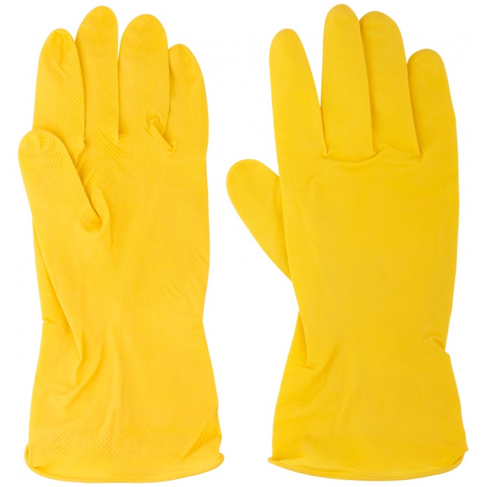Хозяйственные. Латексные, с внутренним хлопковым напылением. Для защиты рук от повреждений и воздействия моющих средств при всех видах домашних работ. Материал: латекс. Упаковка: п/э пакет.