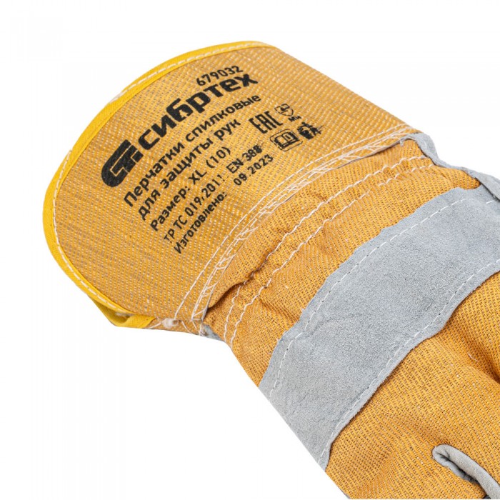 Перчатки спилковые комбинированные, усиленные, утолщенные, размер XL, Сибртех (679032)