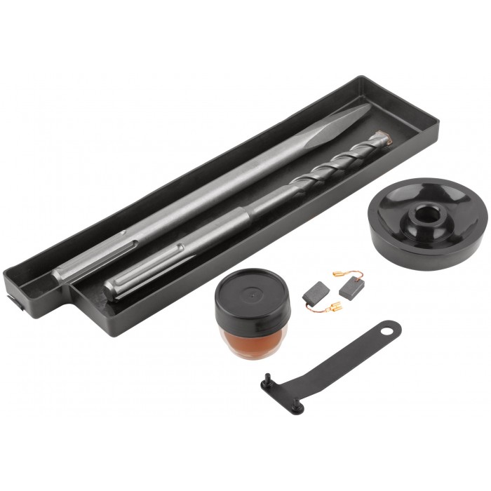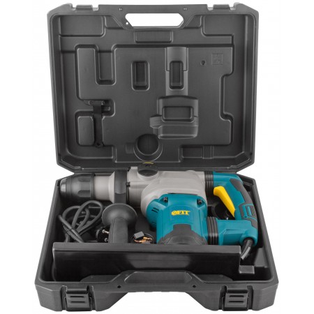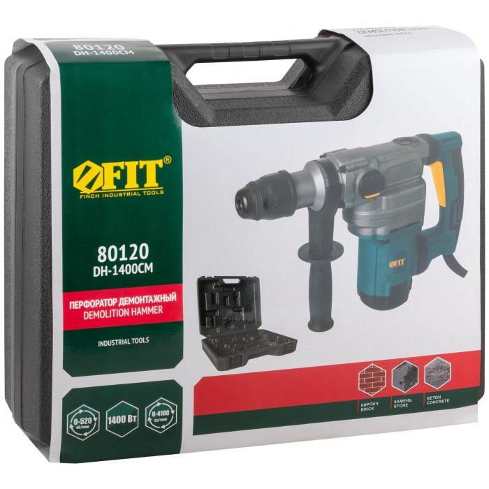 1400 Вт; 0-520 об/мин; 0-4100 уд/мин; 9 Дж; 6,1А; 40 мм; 6,65 кг; кейс. Металлический корпус редуктора, два режима работы (сверление с ударом, долбление), режим поворота сменного инструмента, универсальный патрон SDS-MAX, электропневматическая функция удара, вертикальное расположение двигателя, регулировка частоты вращения, индикатор включения в сеть, демпфер ручки, защита от заклиниваня буров, резиновые вставки.