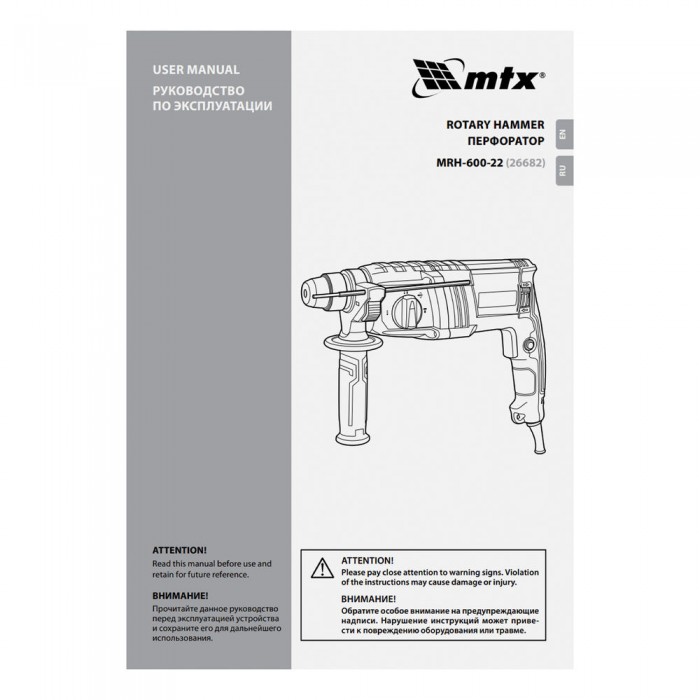 Перфоратор электрический MTX MRH-600-22, SDS-Plus, 600 Вт, 2,2 Дж, 3+1 режима (26682)