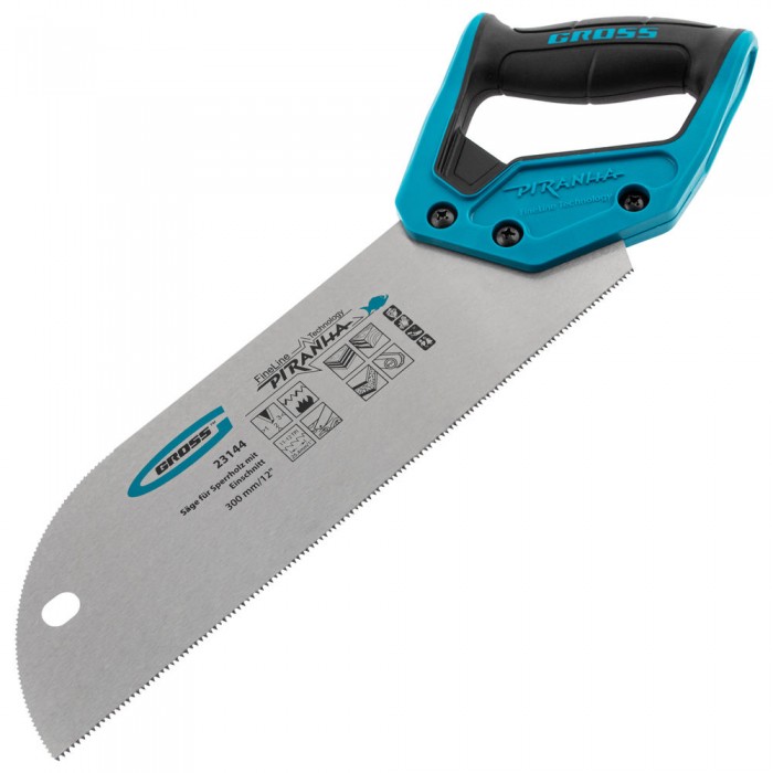 Пила для фанеры с запилом Piranha, 300 мм/12", 11-12 TPI, каленый зуб 3D, двухкомпонентная рукоятка Gross