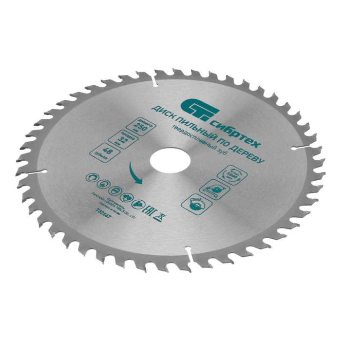 Пильный диск по дереву, 250 х 32 мм, 48 зубьев Сибртех (732667)