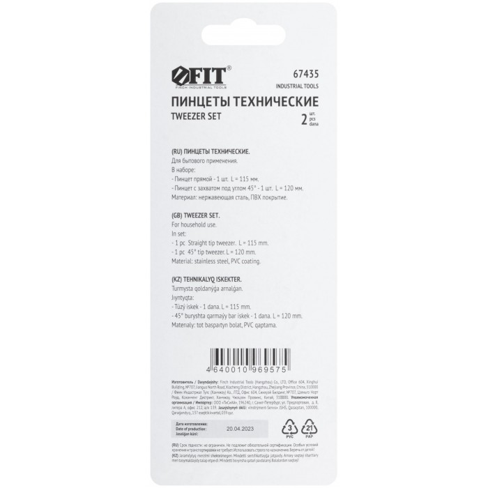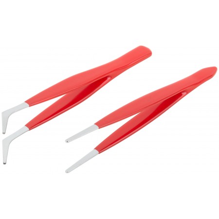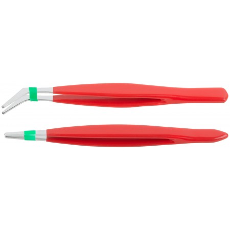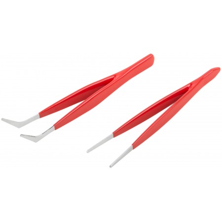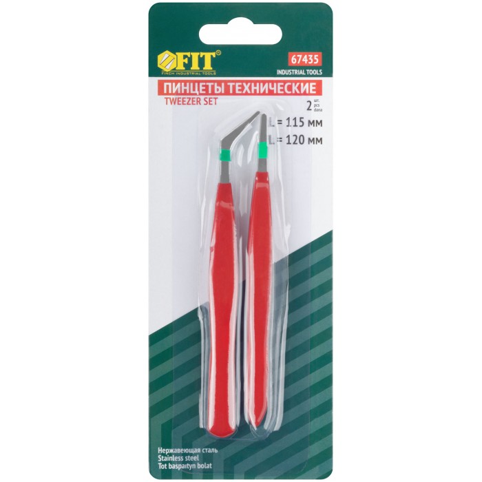 В наборе: пинцет прямой- 115 мм + пинцет с захватом под углом 45°-120 мм. Материал: нержавеющая сталь, ПВХ ручка. Упаковка: блистер.