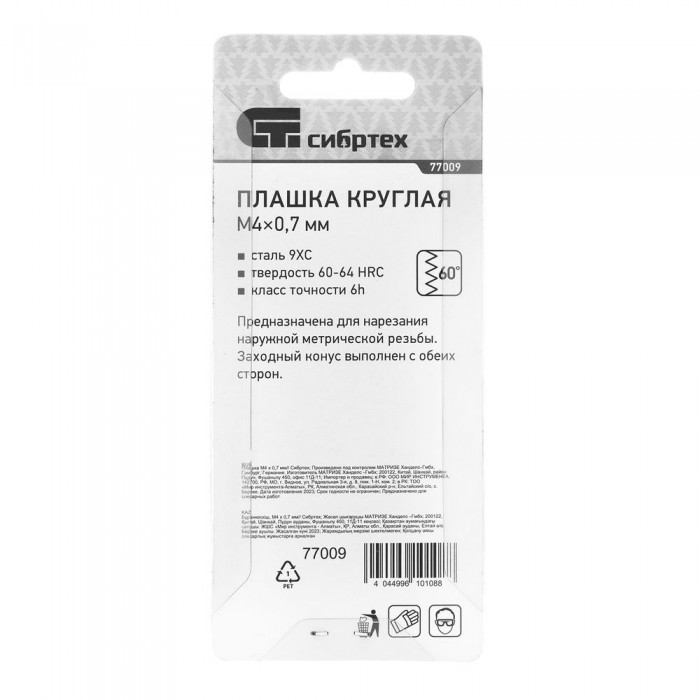 Плашка М4 х 0.7 мм Сибртех