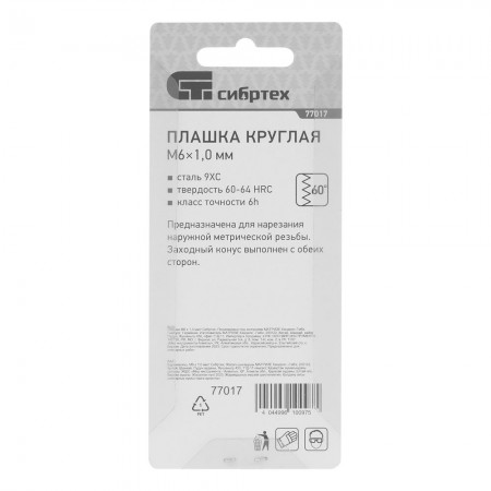 Плашка М6 х 1 мм Сибртех