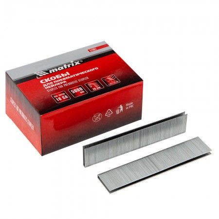 Скобы для пневматического степлера 18GA, 1.25х1 мм длина 28 мм ширина 5,7 мм, 5000 шт Matrix (57661)
