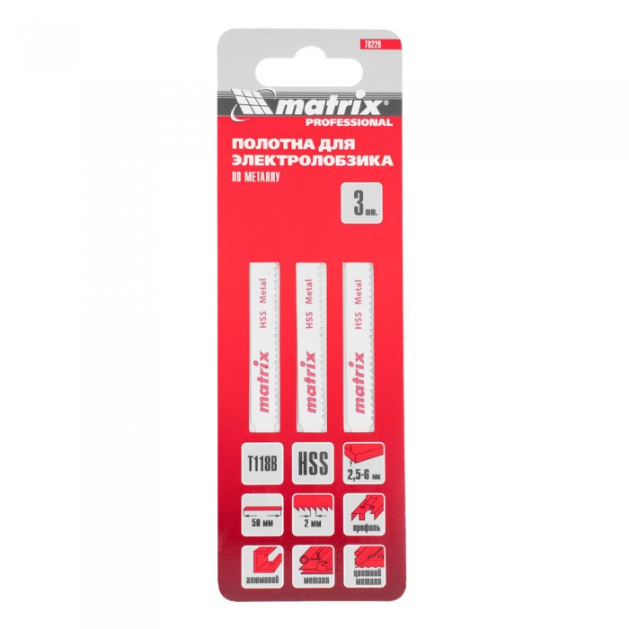 Полотна для электролобзика по металлу, 3 шт, T118B, 50 x 2 мм, HSS Matrix